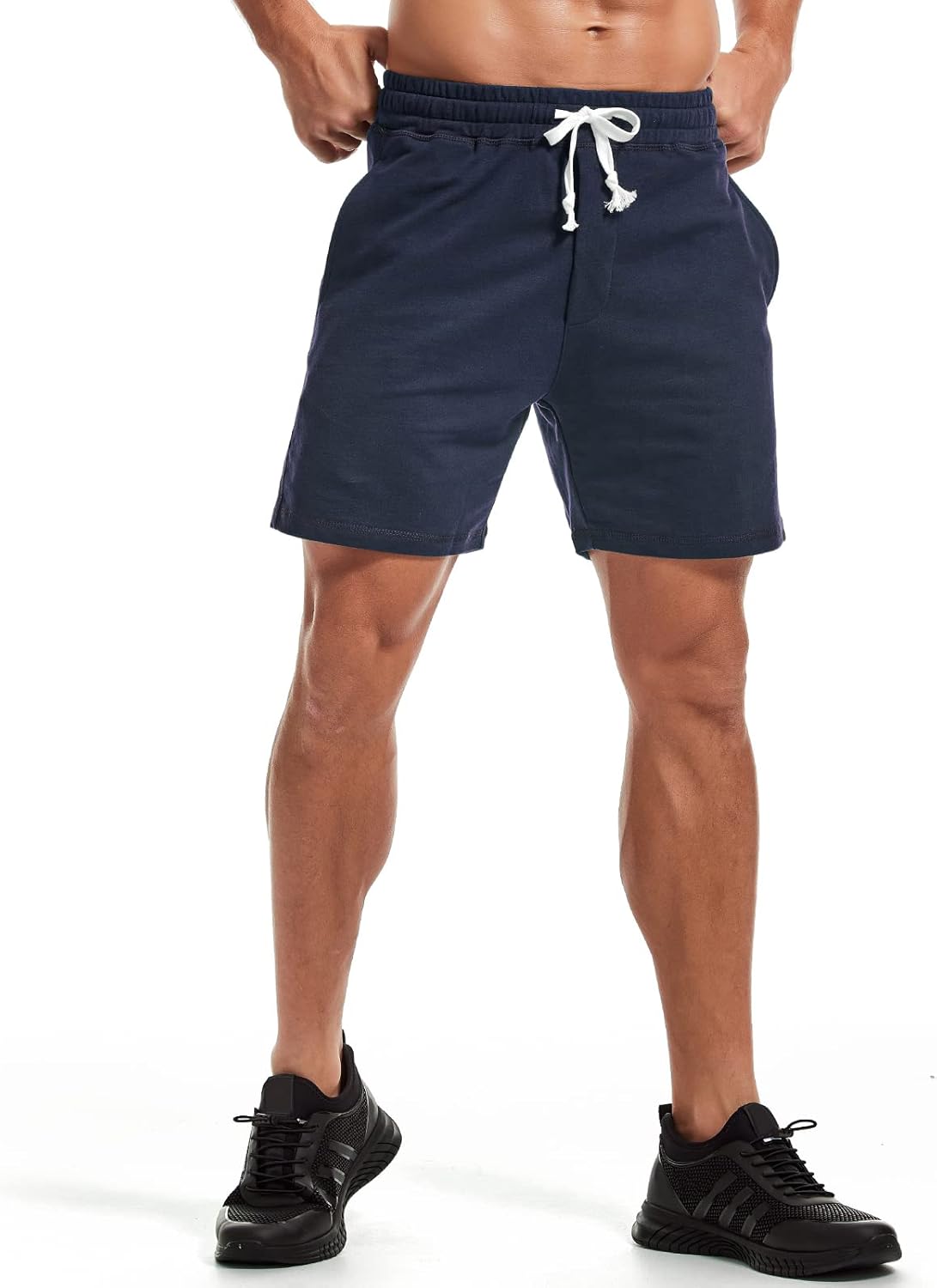 - 【Material】Mens Cotton Athletic Shorts. Our Mens s Shorts are made of 100% Cotton. Soft and skin-friendly material. Inner-side terry fabric, breathable and comfortable. You can wear this Cotton Shorts as Workout Shorts or Casual Lounge Shorts in daily.